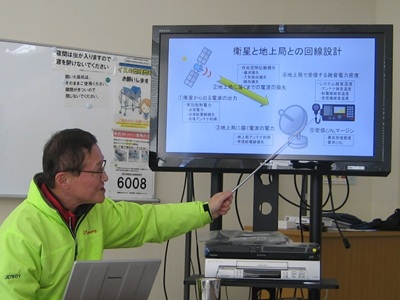 JE7ROYが「プロの視点によるアンテナ設計の基礎及び回線設計とアンテナの小型化」について講義しました。